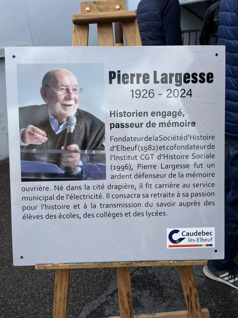 La municipalité de Caudebec-Lès-Elbeuf a procédé, dès les premiers jours de septembre, à l’inauguration de l’école Pierre Largesse , co-fondateur de notre Institut. Une inauguration en présence de sa famille, de la municipalité, des représentants de la société d’histoire d’Elbeuf, de l’Education Nationale, des parents d’élèves. Des écoliers ont lu ses textes. « Pierre Largesse était un passeur d’histoire et de mémoire, un humaniste attaché au monde ouvrier, il aura marqué beaucoup d’entre nous » a déclaré Nadia Mezrar, conseillère départementale.